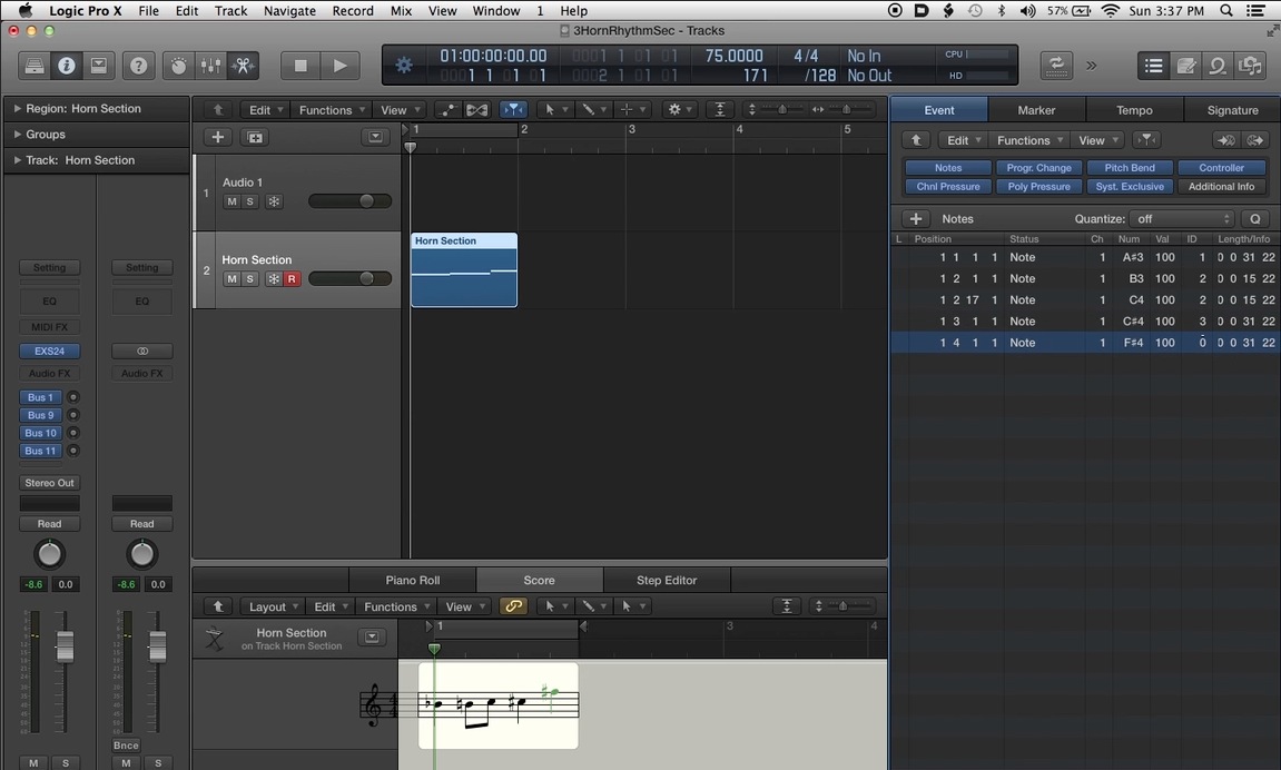 Quite a few of Logic’s EXS24 (replaced with Sampler) instruments come with multiple articulations. In the past changing articulations in the instrument track was often a pain-in-the-butt to program. Well, now Logic makes it very easy to change articulations and increase track realism.